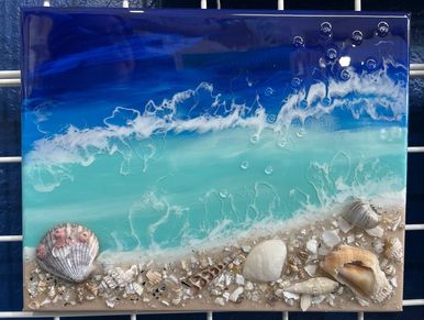 This class is so much fun!! Create your own beach while learning all the tricks of working with Resin. I'll be showing you how to prepare your canvas to paint with acrylic paint, pour resin, how to mix it and pour and eliminate all the air bubbles. We will be creating a seascape. I will provide all the materials, 11"x14" canvas, resin, paints and seashells to compliment your painting. Of course living in Florida you may want to bring your own special shells to display on your piece in which case you are more than welcome to bring some along.